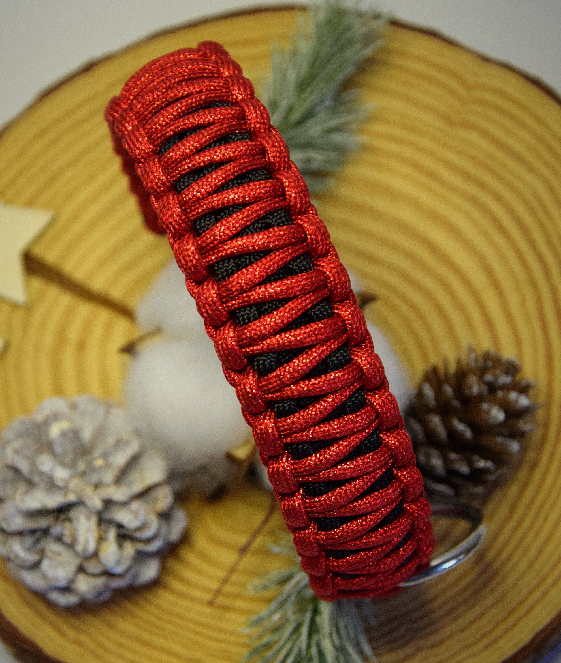 Intemporel et puissant, ce collier affiche un contraste qui ne passe jamais inaperçu. Le tressage extérieur d'un rouge pailleté vif et intense met en valeur le tressage centrale noir profond. Cette combinaison de couleurs symbolise à la fois la chaleur de Noël et l'amour. C'est l'accessoire parfait pour mettre en valeur votre loulou pour les fêtes, et le côté robuste du collier, qui résistera à toutes vos balades hivernales!